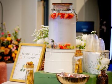 Keep your guests refreshed with our stylish hydration station, featuring infused waters and non - alcoholic beverages. Perfect for warm weather events, outdoor celebrations, or as a welcome drink option before cocktail service begins.
